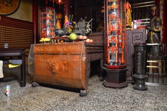 為了更深入了解並守護珍貴的廟宇文物,臺南市文化資產管理處自113年起推動「臺南市百年廟宇文物普查」計畫,首波以主祀保生大帝的百年廟宇為調查對象。普查過程中,調查人員宛如文化偵探,結合科學檢測與文史資料比對,一步步揭開藏在供桌內部結構與層層漆飾下的線索,讓原本不易察覺的工藝細節與歷史訊息重新被看見,也使供桌的製作技術與發展脈絡更加清晰。