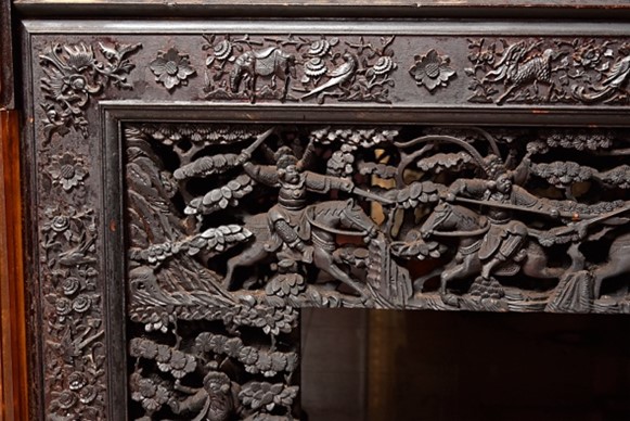 此外,保寧宮供桌上則發現「火木彫刻工處承造」的題記。「火木彫刻工處」為臺南知名匠師陳火木所創立,其技藝對本市傳統工藝影響深遠。現今臺南「茄苳入石柳」重要保存者陳南陽,正是師承陳火木,並已將此技藝傳承至第三代,持續延續府城木作工藝的生命力。